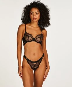 Fühl dich romantisch mit diesem schönen ungepolsterten BH! Er hat einen durchgehenden halbtransparenten Look mit viel Spitze und romantischen Stickereien. Das Futter der Cups ist mit Spitzendetails besetzt. Verziert mit einem bequemen Unterbrustband. Finde den dazu passenden Slip, um das Set zu vervollständigen!